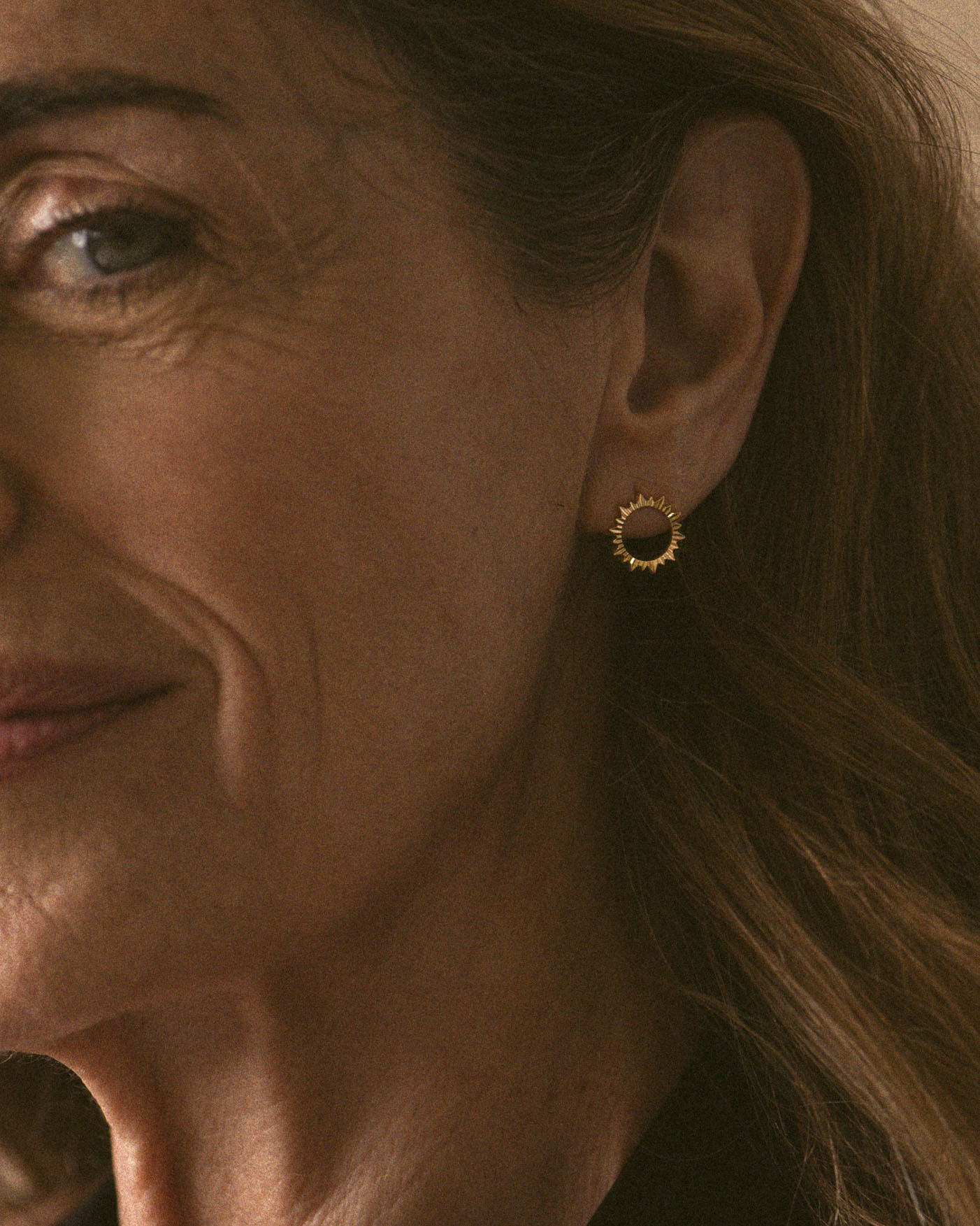 Boucles d'oreilles rondes composées d'un petit soleil ajouré dorées à l'or fin.